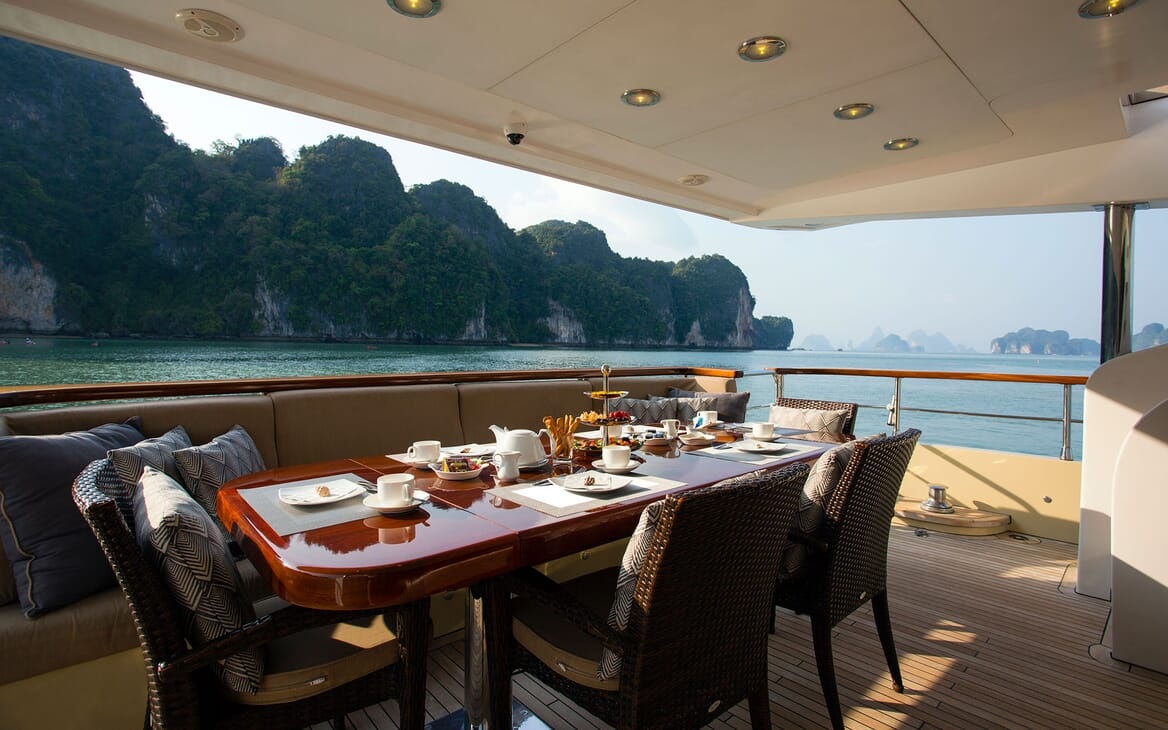 ✅ 6.2 m covered tender (8 guests) with dive tank rack & shower